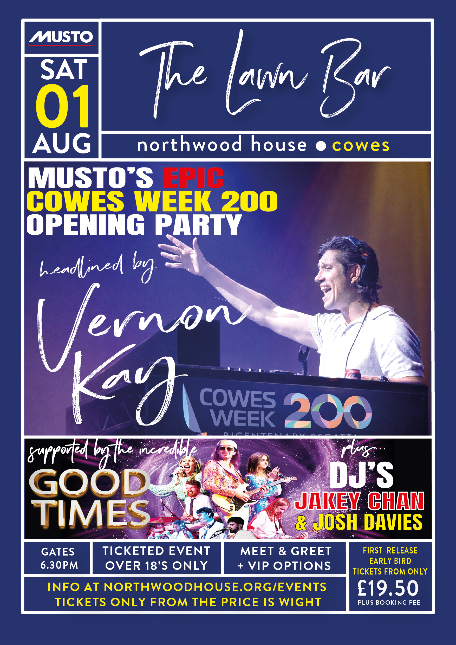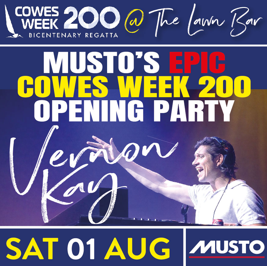 The Musto Cowes Week 200 Opening Party is locked in and happening on Saturday 1st August…it’s an event that going to have you buzzing, so save the date and get these red-hot tickets booked ASAP!