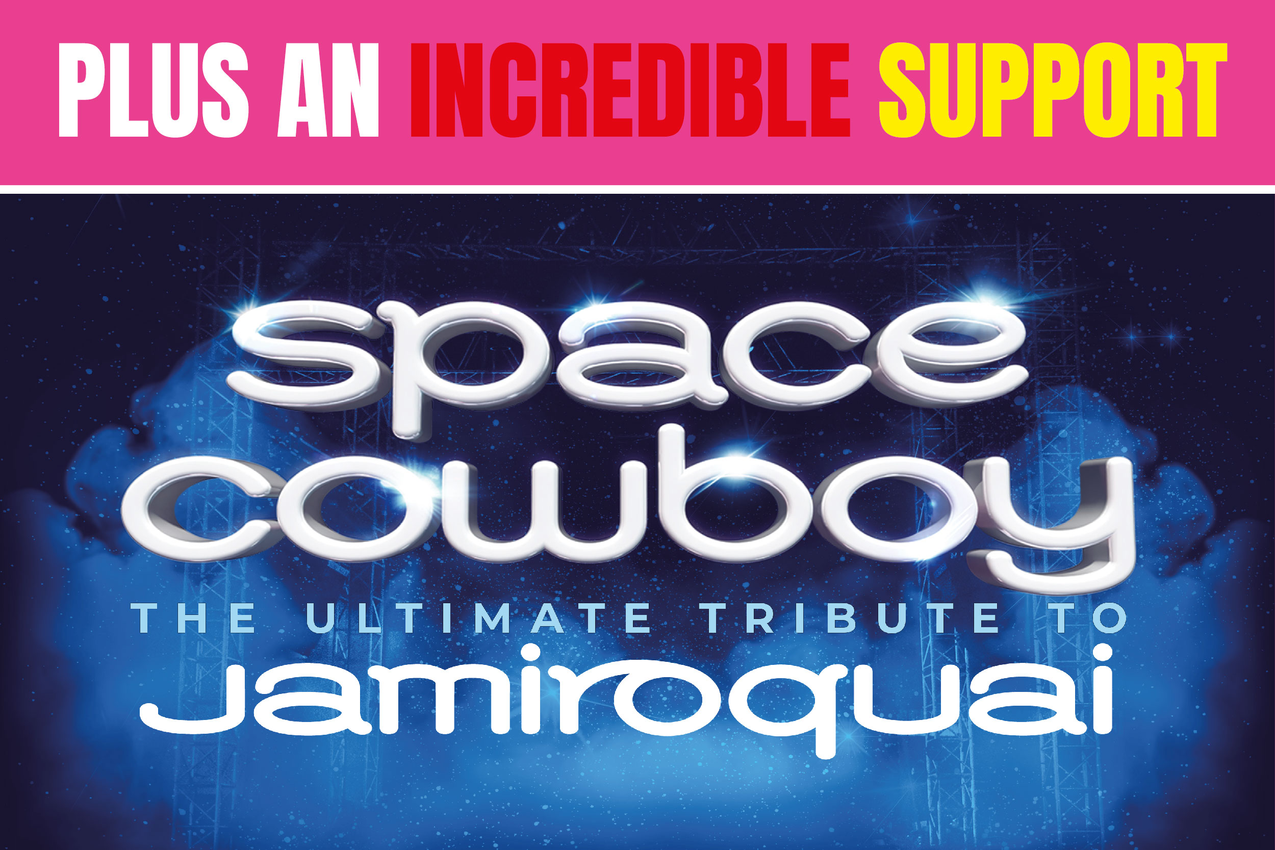 Supporting our incredible headline act will be SPACE COWBOY...an incredible 7 piece band playing 90 minutes of the best Jamiroquai tunes between 7.30pm and 9pm to get you on your feet and dancing in front of the stage with a drink in hand. This energy-packed experience comes complete with stylish outfits, engaging crowd interactions, and all the signature elements that make for an unforgettable night for music fans. With a setlist of timeless classics from from the main party man himself