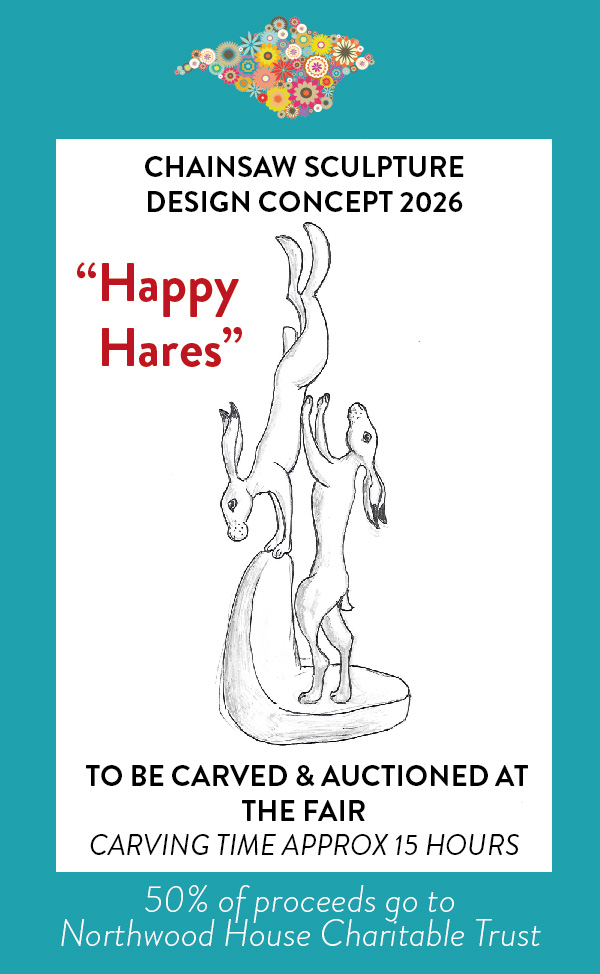 Would you love to own the incredible “Happy Hares” timber sculpture to be carved at the Isle of Wight Spring Art & Garden Fair by renowned Chainsaw Artist Paul Sivell?